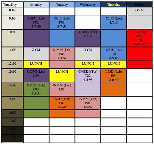 A million apologies. It's been 4 days since I last updated. Well, take a look at my timetable.